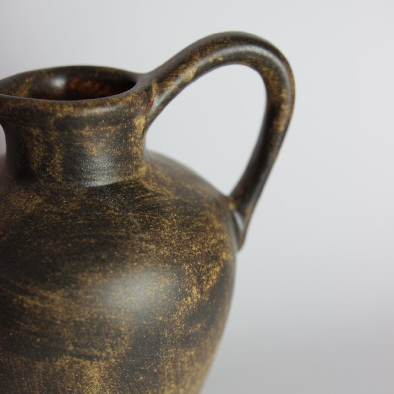 Naczynie zostało wykonane z gliny kamionkowej i pokryte szkliwem o fakturze satynowej w odcieniach ziemi.